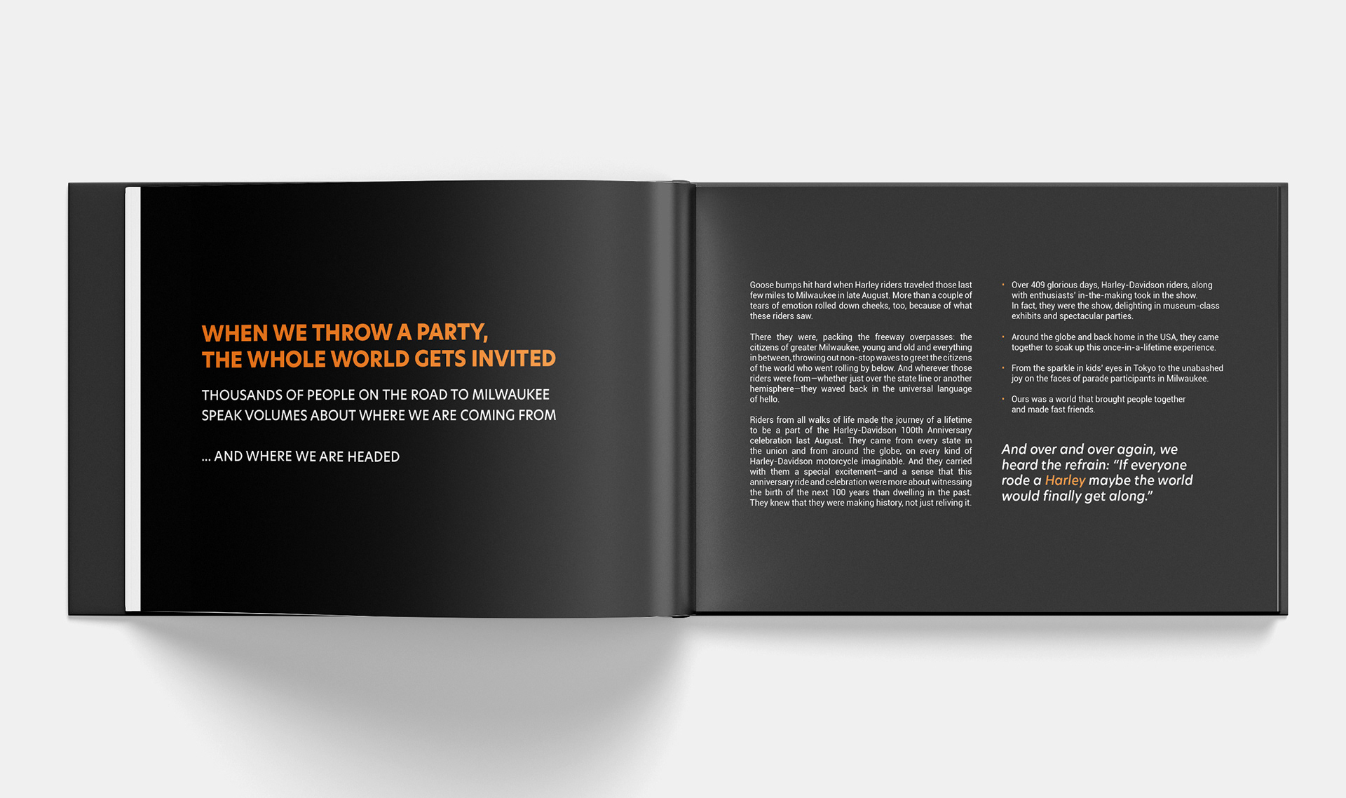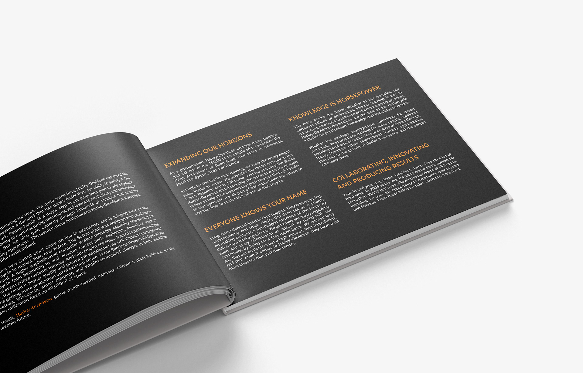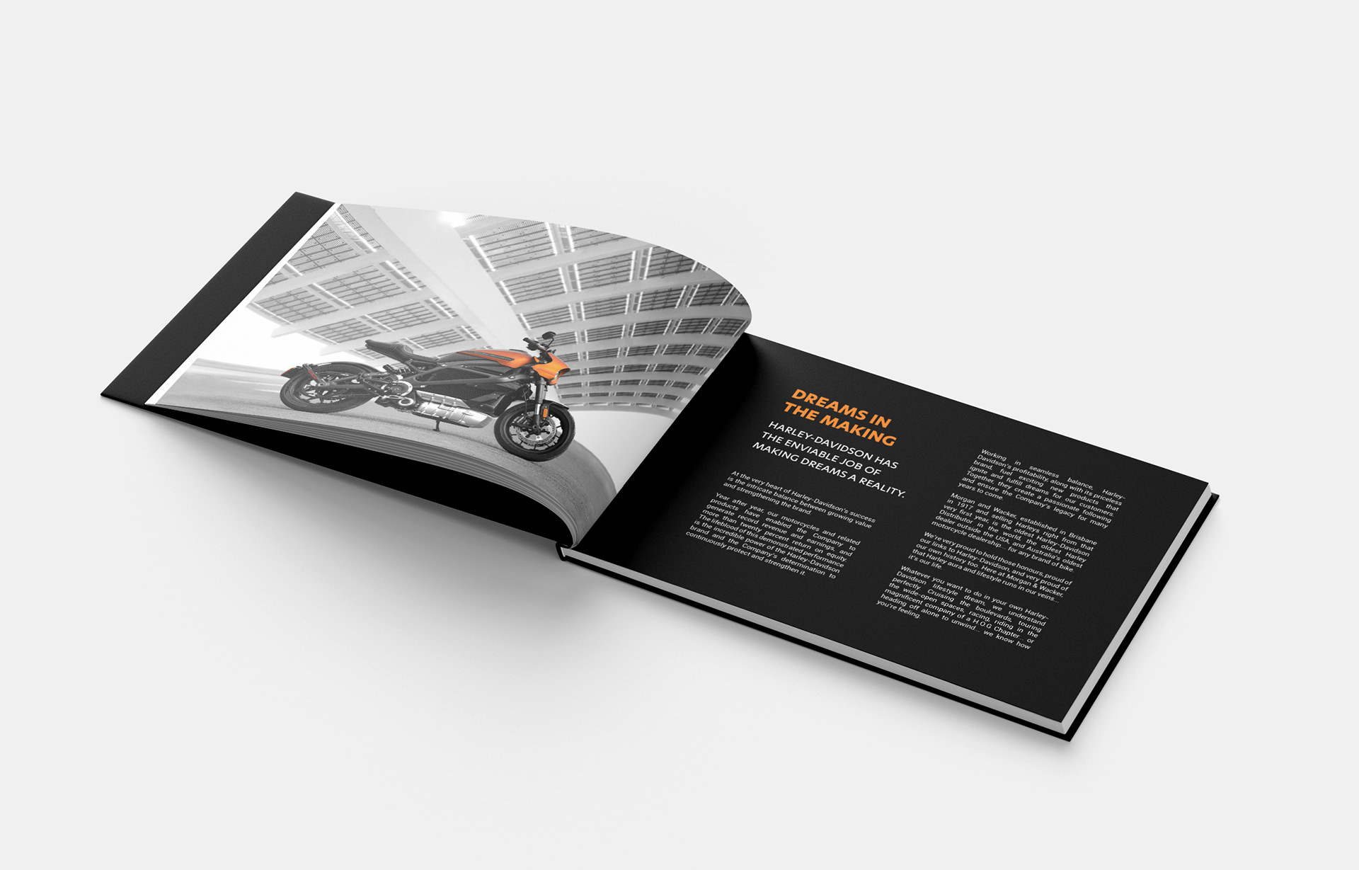 A 20-page booklet using Harley-Davidson's brand, produced and designed in my own theme and style.